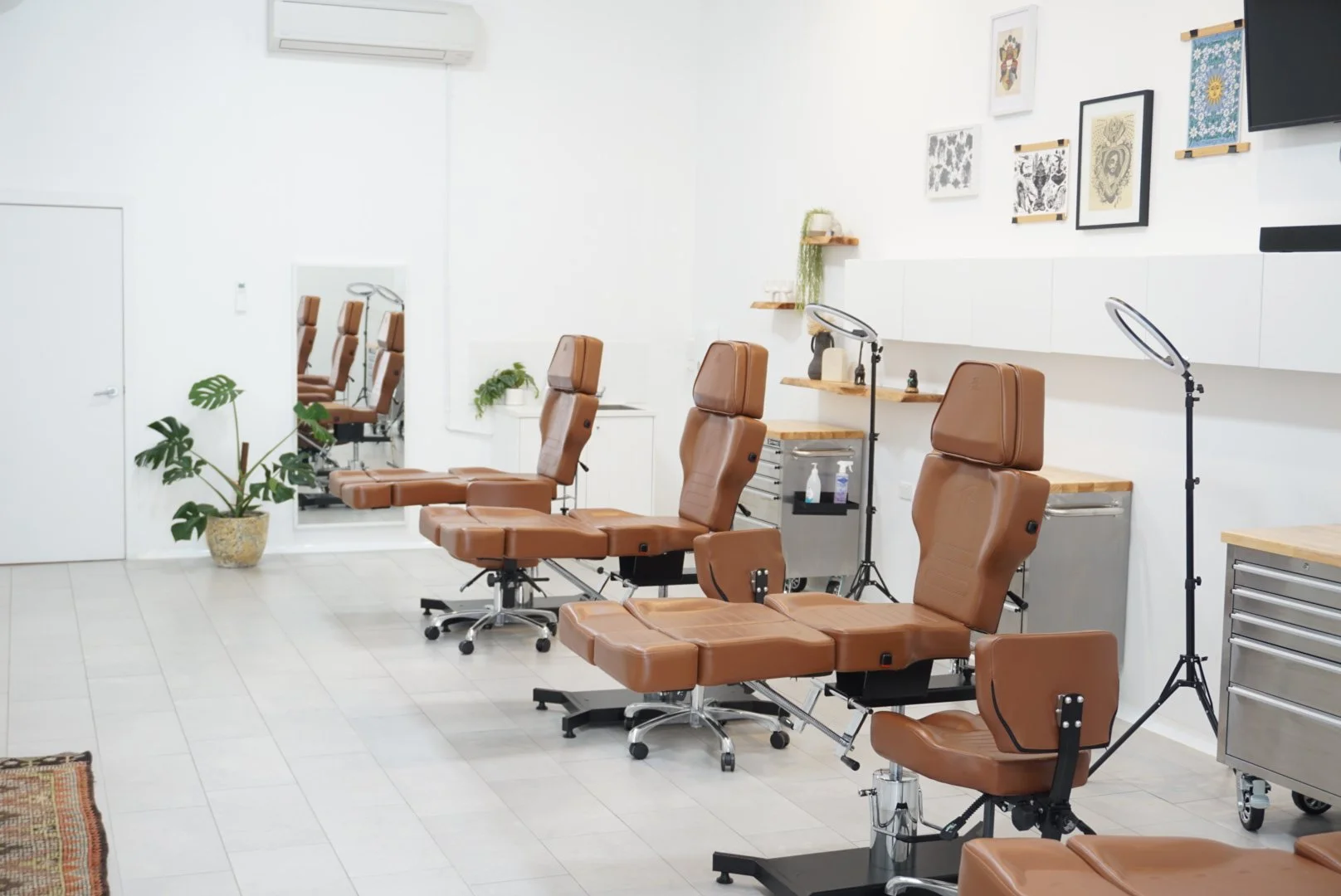 Our space is tranquil and intimate, in an open plan setting. We wanted to make a space where creative energy flows amongst our tattooers in a beautiful way. Partitions can be used if you would prefer privacy for your session.
